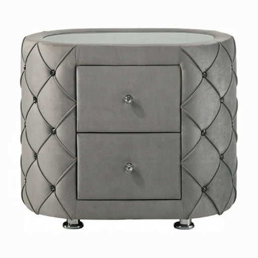 ACME Soteris Nightstand , Antique Gray, 24" x 17" x 24"H, 40Lbs. Materials: Wood, Wood Veneer, Composite Wood