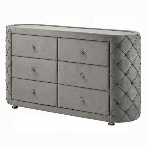 High gloss white finish wraps the Lorimar 6-drawers dresser for a casual yet contemporary look to be added to your home. Keep clothing, accessorie...