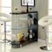 Numbi Black/Chrome Mini Server, 42"L X 15 3/4"W X 41"H, 80lbs. The modern lines and chrome finish make this lacquer mini server a perfect piece for a contemporary home. Available in black or white. Features: Lacquer Coating Chrome Legs Glass Shelf Wine Glass Hanger