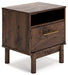 At the intersection of industrial cool and chic sophistication you’ll find this nightstand. With a rich brown finish over replicated walnut wood grain, paired with a burnished goldtone handle, it offers an authentic touch that plays well any way you style it. Simple and elegant in its design, this piece keeps your home decor grounded while elevating your modern style.